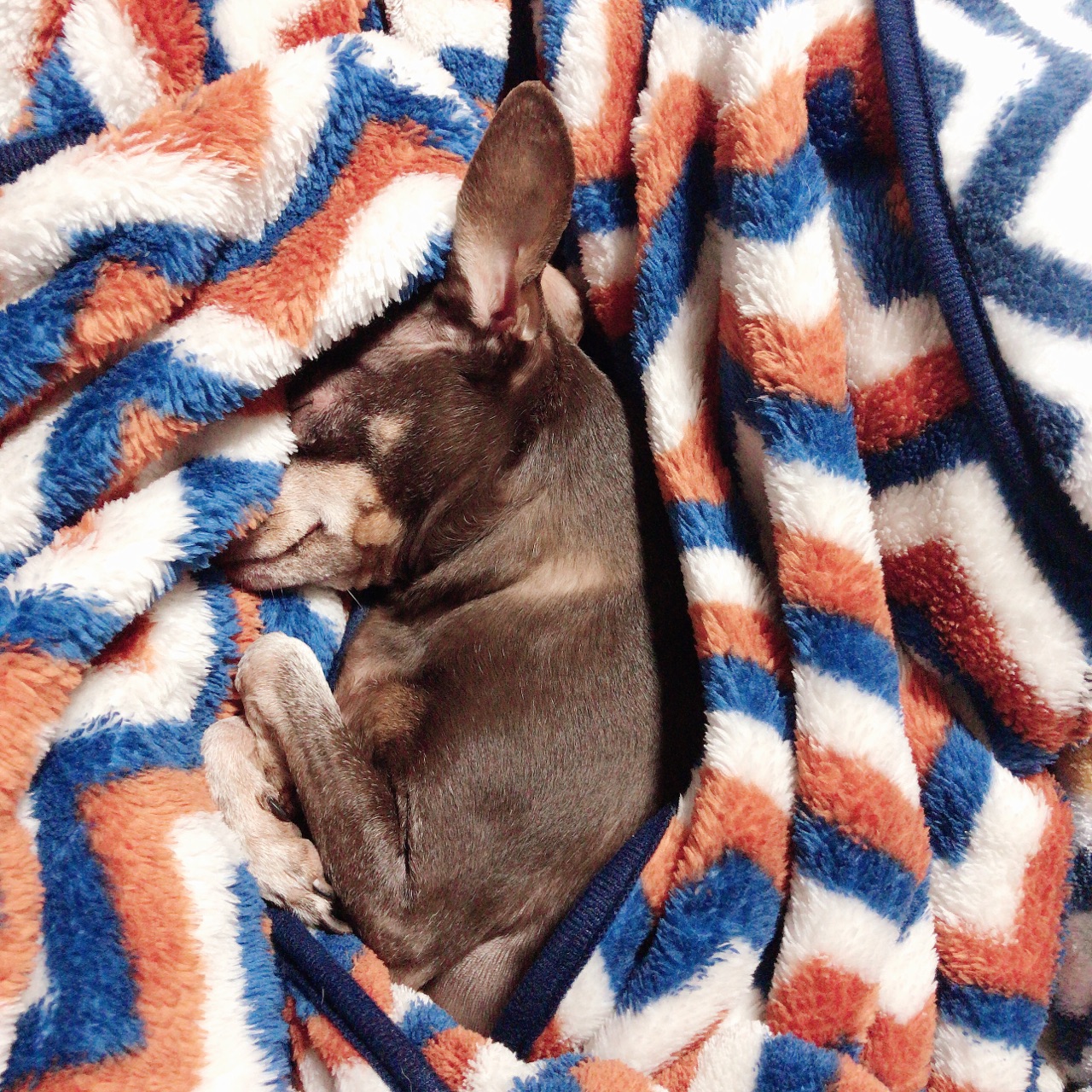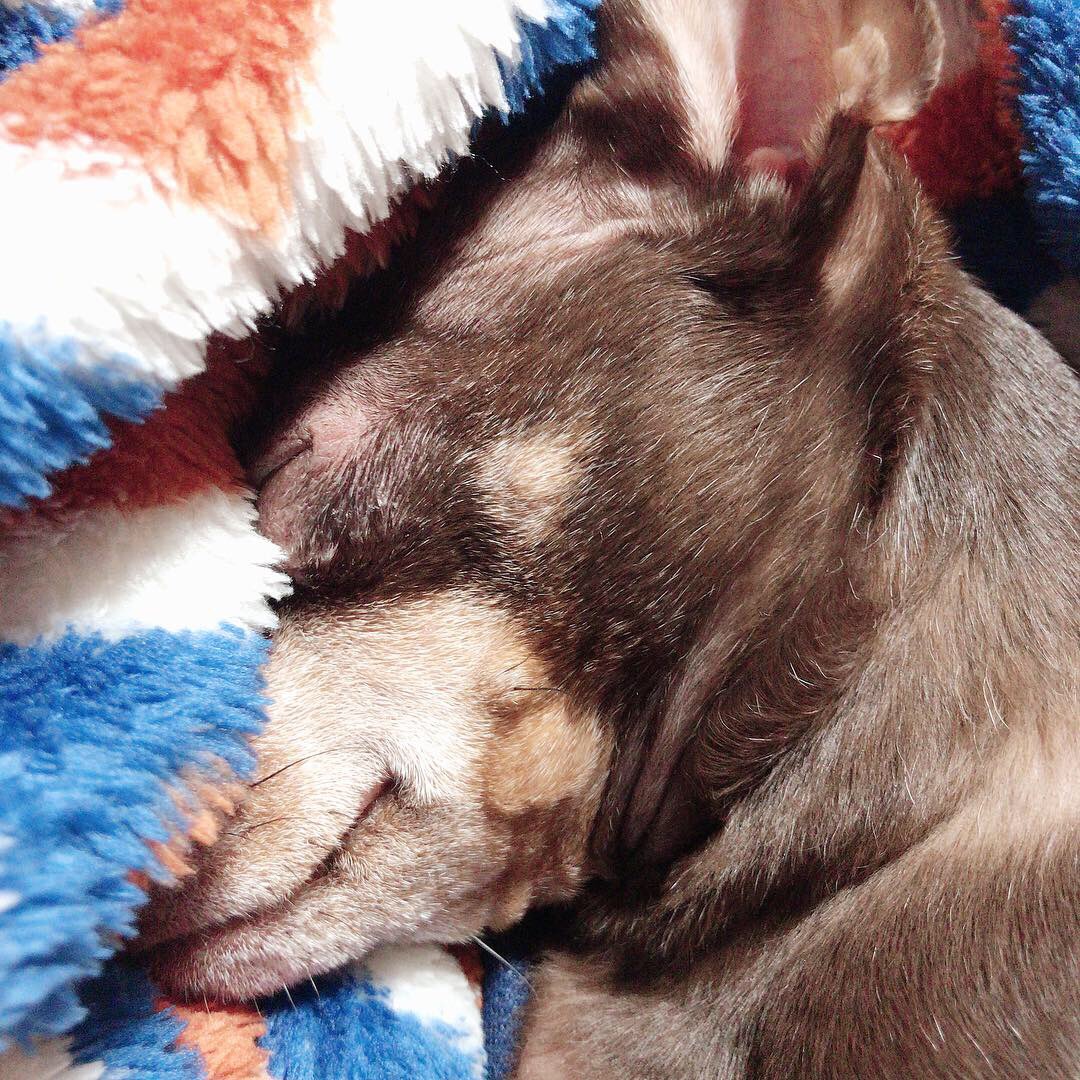 短毛ちゃんはやっぱり寒がりなのかな?この顔が見られたら、気持ちが暖かくなるからサイズ合わなくても凹まない❤︎