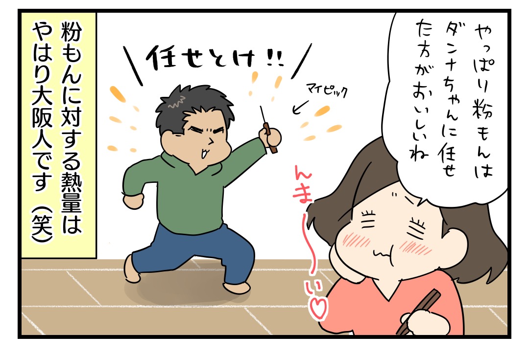 粉もんを作る時はほぼダンナちゃんに任せて