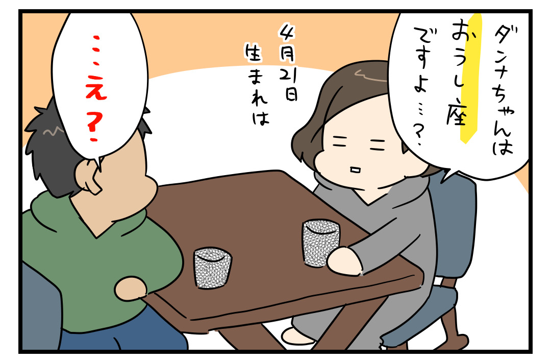 私は20日生まれで、ずっと牡牛座だと信じていたのに、20日が星座の境目なので「生まれた年の星座位置による」らしく、調べたら牡羊座だったことが二十歳過ぎて発覚しました!笑 ダンナちゃんさんのカンチガイに、ちょっと違うけど共感…思わずコメント、失礼致しました!(ちなみに基本が占う方によって星座が変動するのが4月20日生まれの宿命です…)