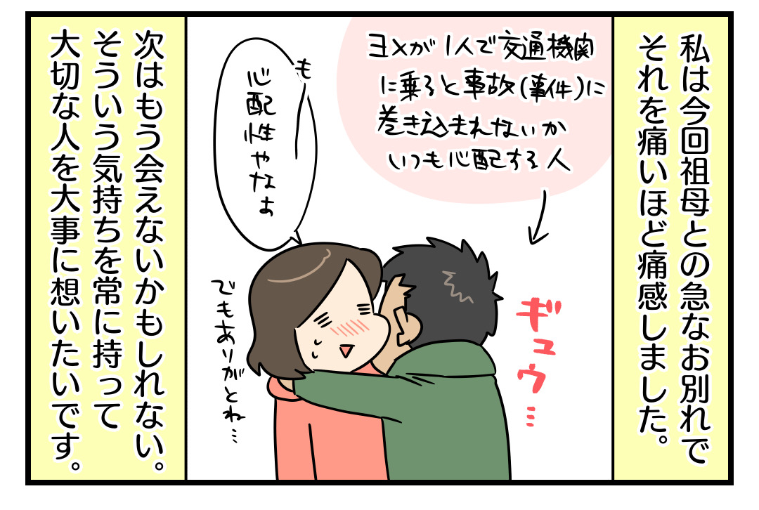 祖父母の亡くなった時期が同じくらいだった事、ヨメちゃんと私が同い年な事が重なって、つい長々とコメントしてしまいました。吐き出させてくれてありがとうございましたm(_ _)m