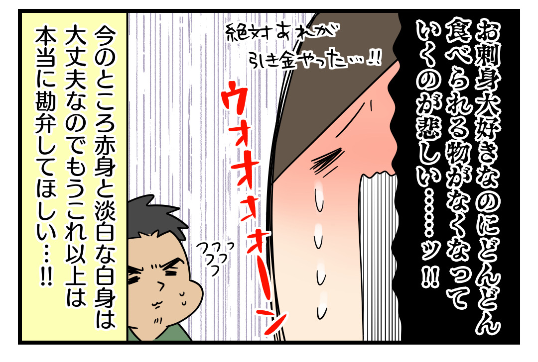 私もお刺身大好きなので食べられなくなるの辛い気持ちよく分かります😢