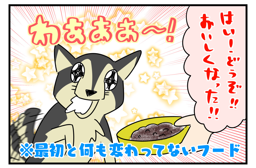人間も「ほい」って出されるより「おいしいよー!」ってだされたら美味しく感じるかもしれないですねw