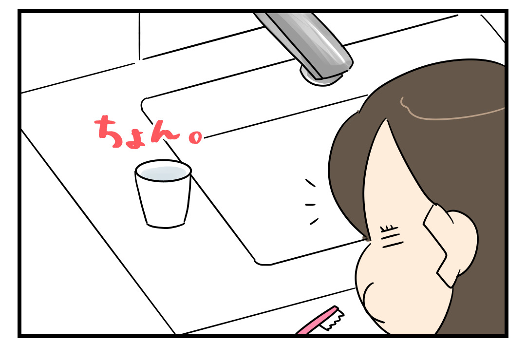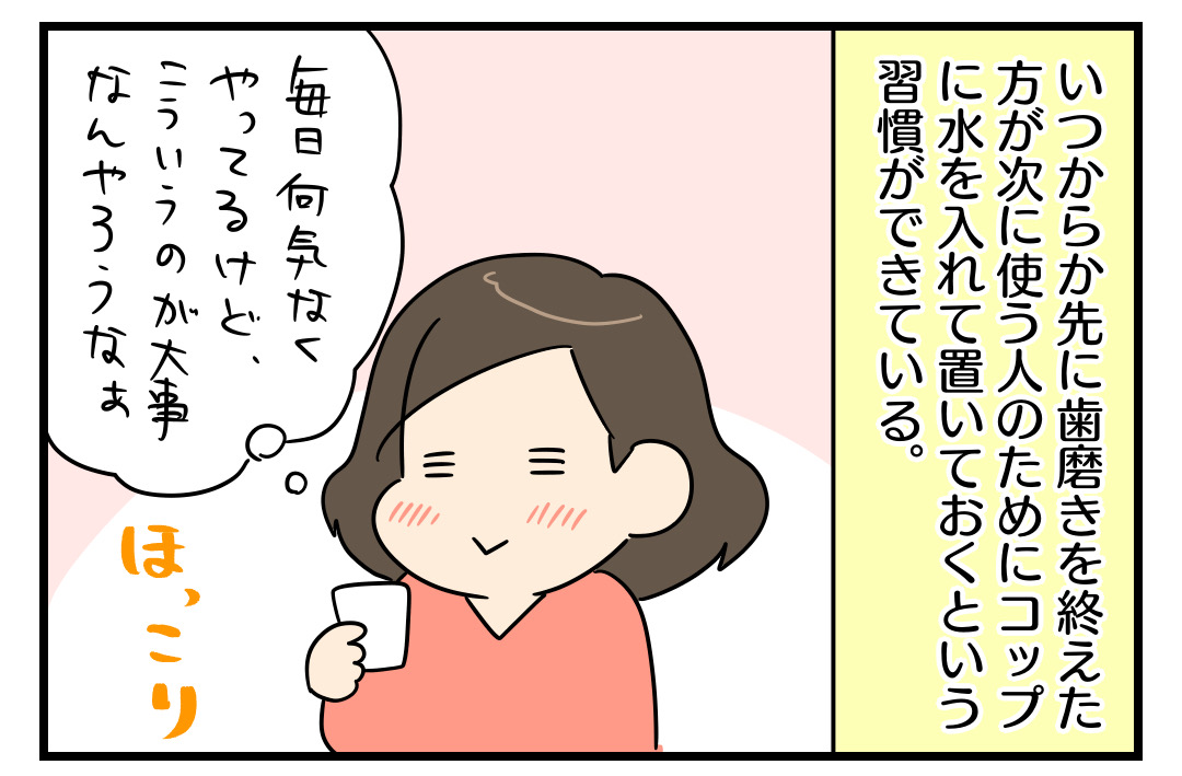 先に歯を磨いた方がコップに水を入れて