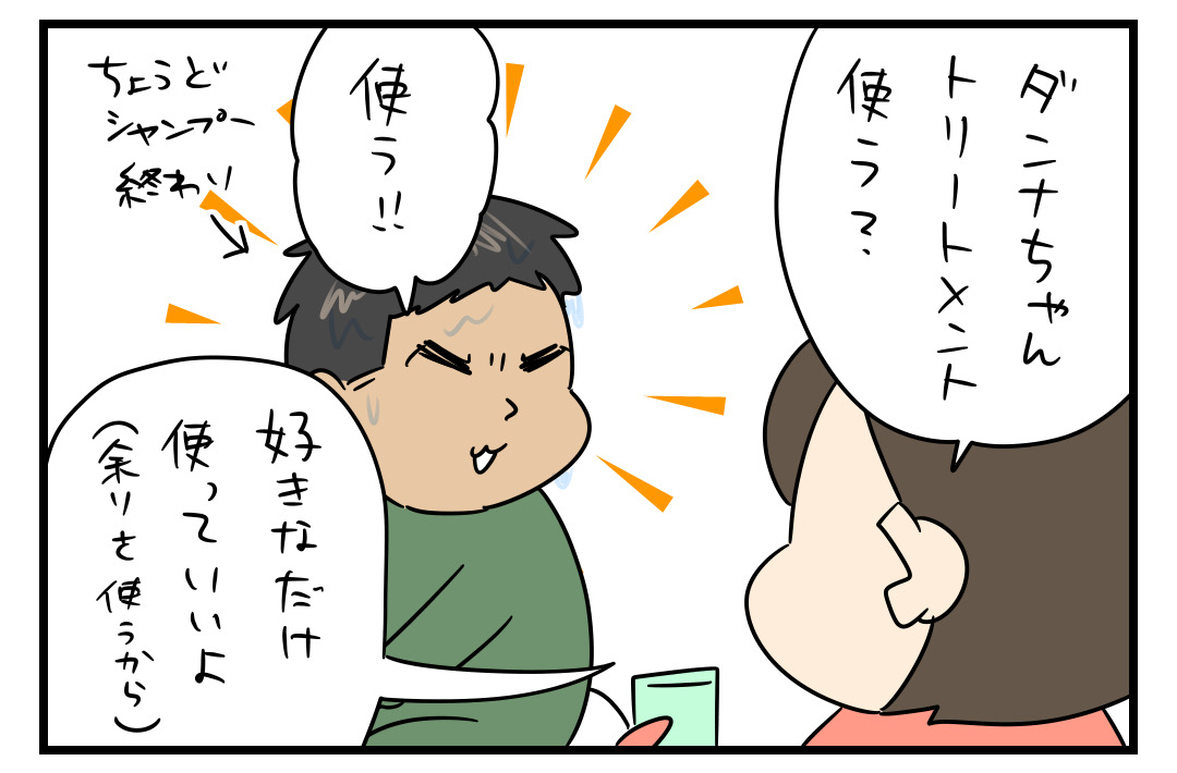 ダンナちゃんとのトリートメントの話、ダンナちゃんがお湯で少しでも使えるようにしてたところにきゅんときました。