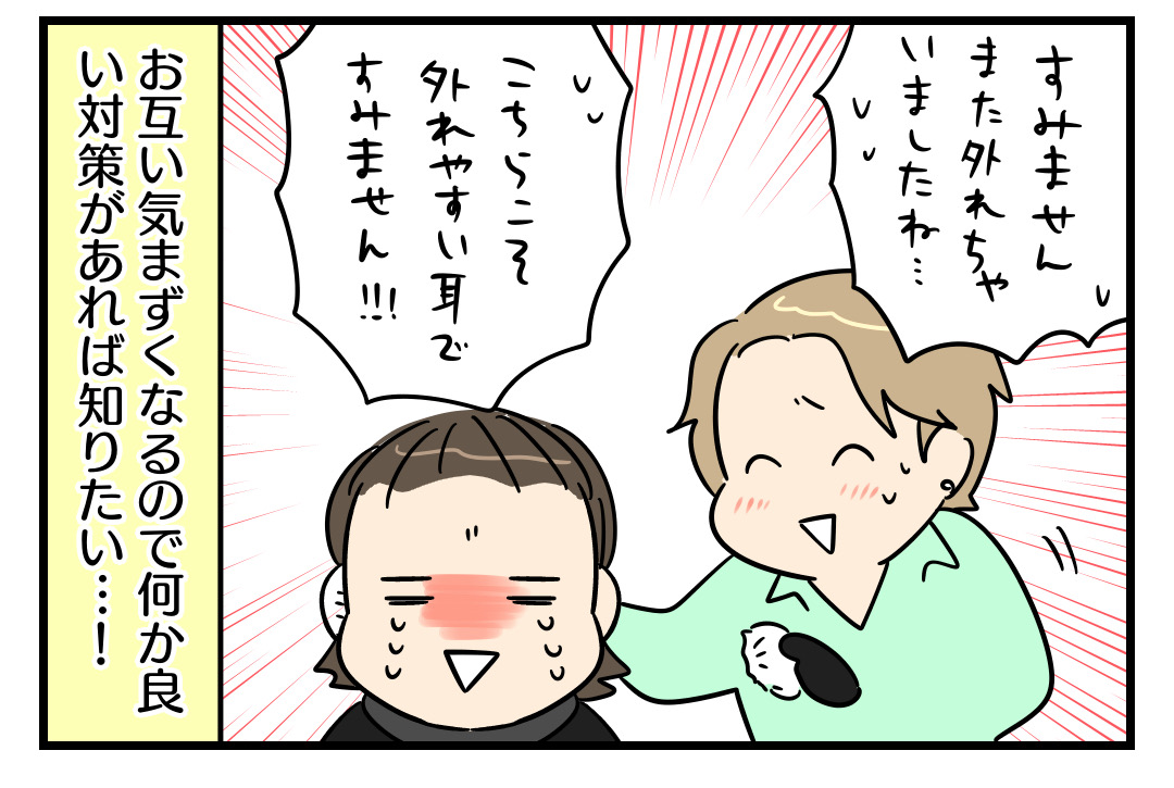 耳カバーの上から輪ゴムで軽く押さえられないかな?と思いました。