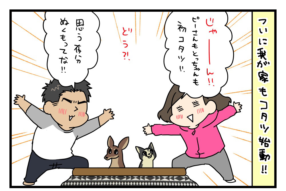 ピーさんととっちゃんはコタツ自体見るのが初めてなので