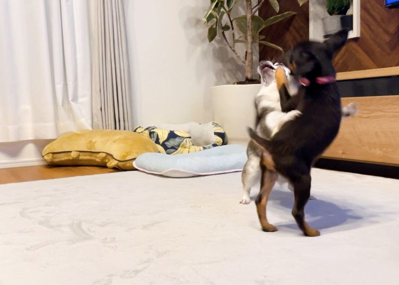 先住犬との相性も杞憂に終わった程