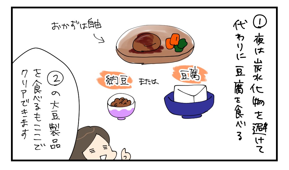 1.夜は炭水化物を避けて代わりに豆腐を食べる