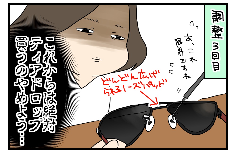 ドロップでもこれ!っていうのはあると思うし、なんなら鼻当てゴムを変更したり、ゴムを盛ることもできます!諦めずに色々かけてみて、お店と相談してみてくださいね!