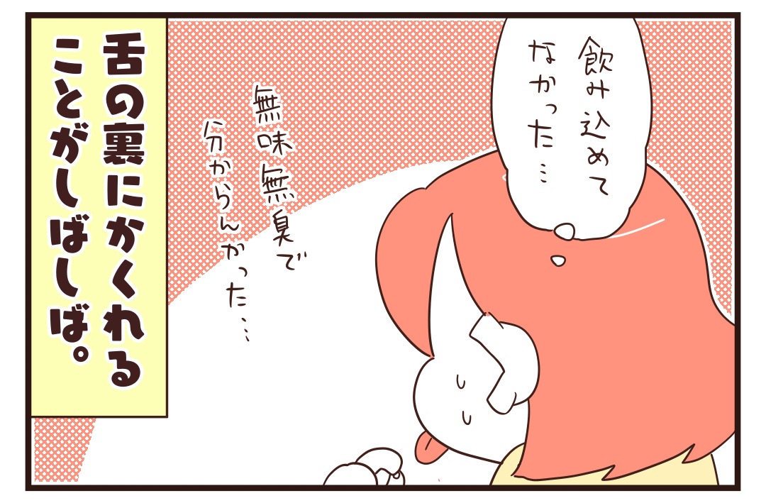 薬と水を飲む前に 下の上に 置くまでにくるくる回してから飲むようにしてます(^^)