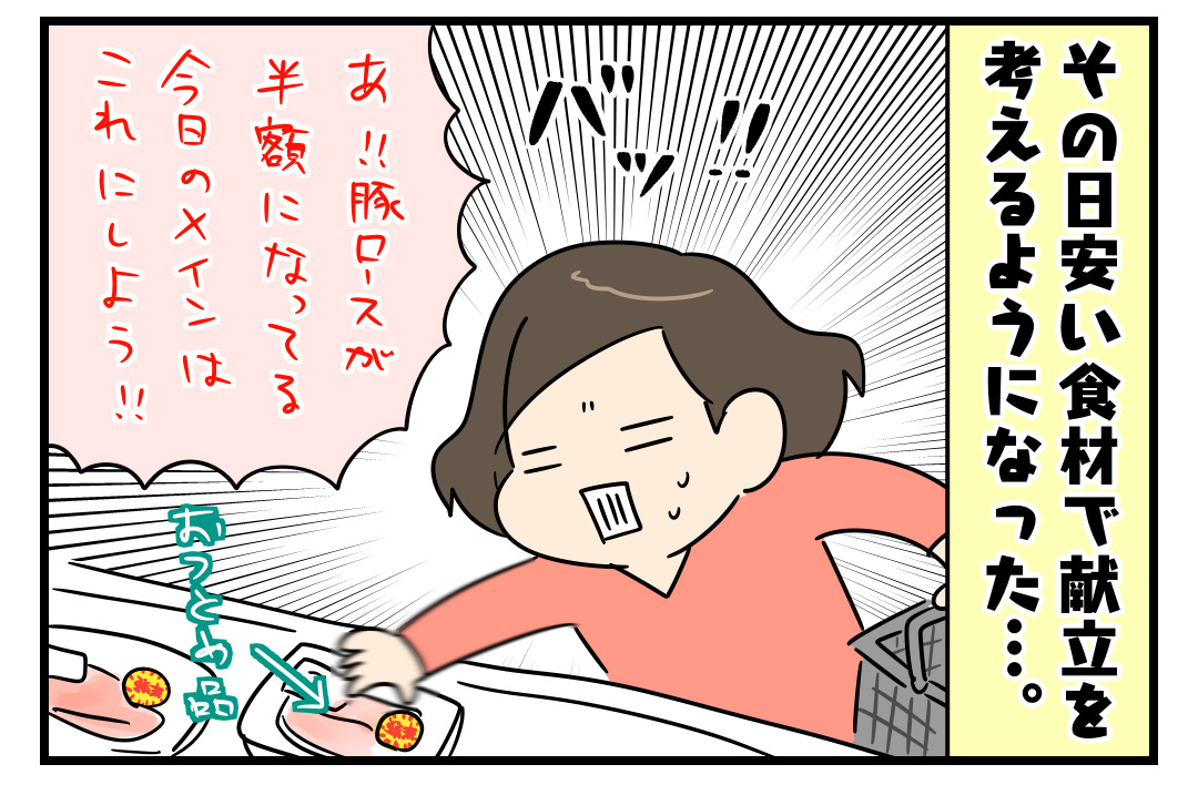 半額シール、広告の品、おつとめ品、見切り品コーナー、鶏むね肉Bigパック…。