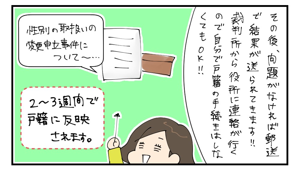 以上が性別変更手続きの体験談になります!