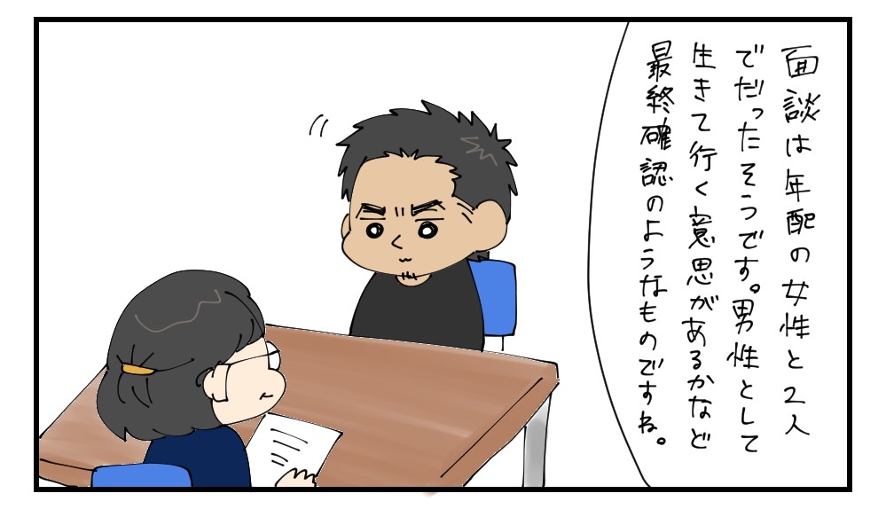 会議室のような部屋で、書記官の方と面談し